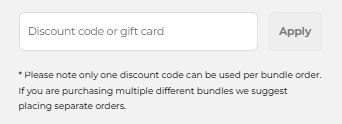 Bundles are already discounted, so discount codes don’t apply.